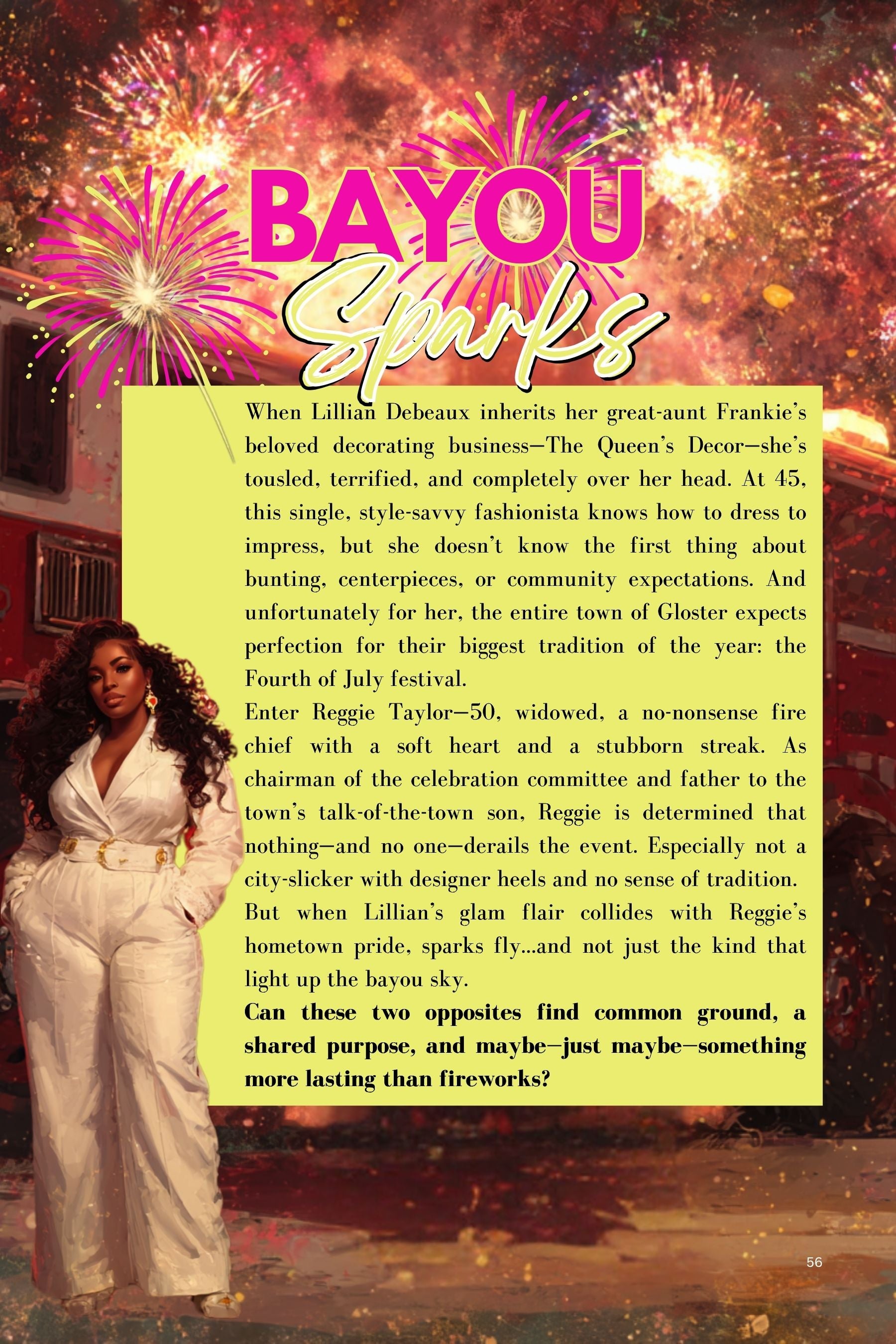 Bayou Sparks is a romantic comedy with faith at its center, laughter in every chapter, and just enough heat to keep your heart glowing long after the final firework fades.